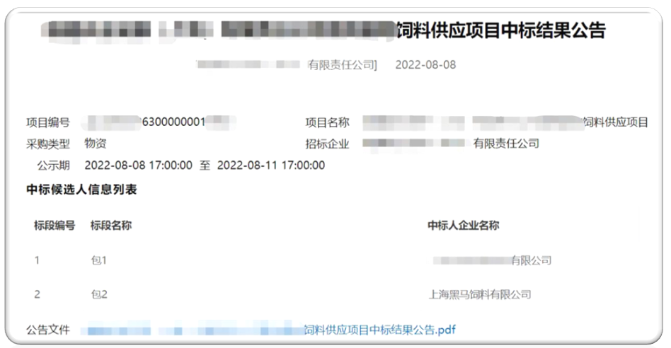 近些年,我司先后中標過多個規模養殖場的飼料招標項目。近日,我司又成功中標一規模豬場的飼料招標項目。