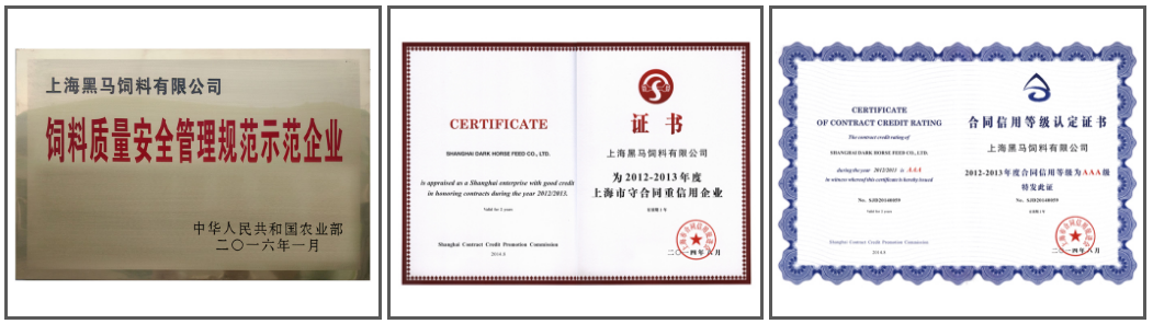 黑馬公司已成立23年了,公司產(chǎn)品銷(xiāo)往全國(guó)近二十個(gè)省市,正是基于對(duì)黑馬品牌的信任,不少客戶(hù)與公司已經(jīng)有近二十年的合作關(guān)系了。冰凍三尺非一日之寒,樹(shù)長(zhǎng)百丈非一日之功。一個(gè)品牌的樹(shù)立絕不是一蹴而就,它需要企業(yè)長(zhǎng)期不懈的努力,始終把品質(zhì)當(dāng)成品牌的基礎(chǔ)來(lái)做才可以鑄就的。雖然我們是農(nóng)業(yè)部《飼料質(zhì)量安全管理規(guī)范》示范企業(yè)、上海市守合同重信用AAA企業(yè)、ISO9001國(guó)際質(zhì)量管理和ISO22000食品安全管理體系認(rèn)證企業(yè),2016年公司作為飼料工業(yè)優(yōu)秀企業(yè)被上海市推薦收錄到農(nóng)業(yè)部編纂的《中國(guó)飼料工業(yè)年鑒》中,2017年被中國(guó)畜牧獸醫(yī)學(xué)會(huì)養(yǎng)豬分會(huì)、國(guó)家飼料工程技術(shù)中心評(píng)為飼料匠心企業(yè)。從客戶(hù)的認(rèn)可和這些榮譽(yù)來(lái)看,黑馬已經(jīng)是一個(gè)有一定影響力的品牌了,但離我們的夢(mèng)想還遠(yuǎn),我們?nèi)匀粫?huì)一如既往地用品德促品質(zhì),用品質(zhì)鑄品牌。上海黑馬飼料,品德品質(zhì)品牌!