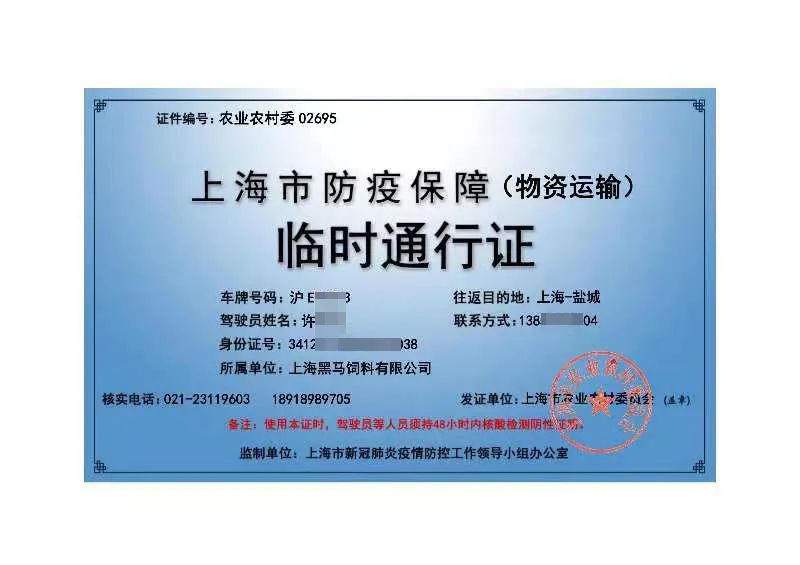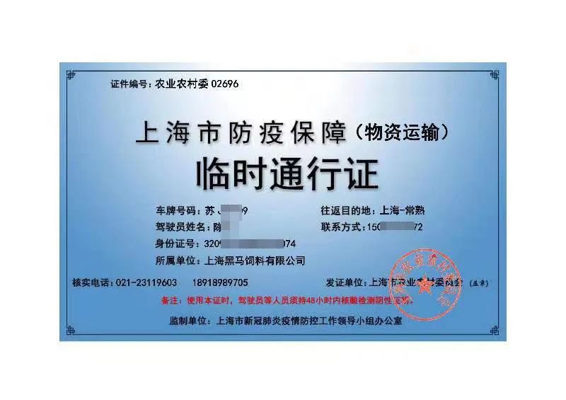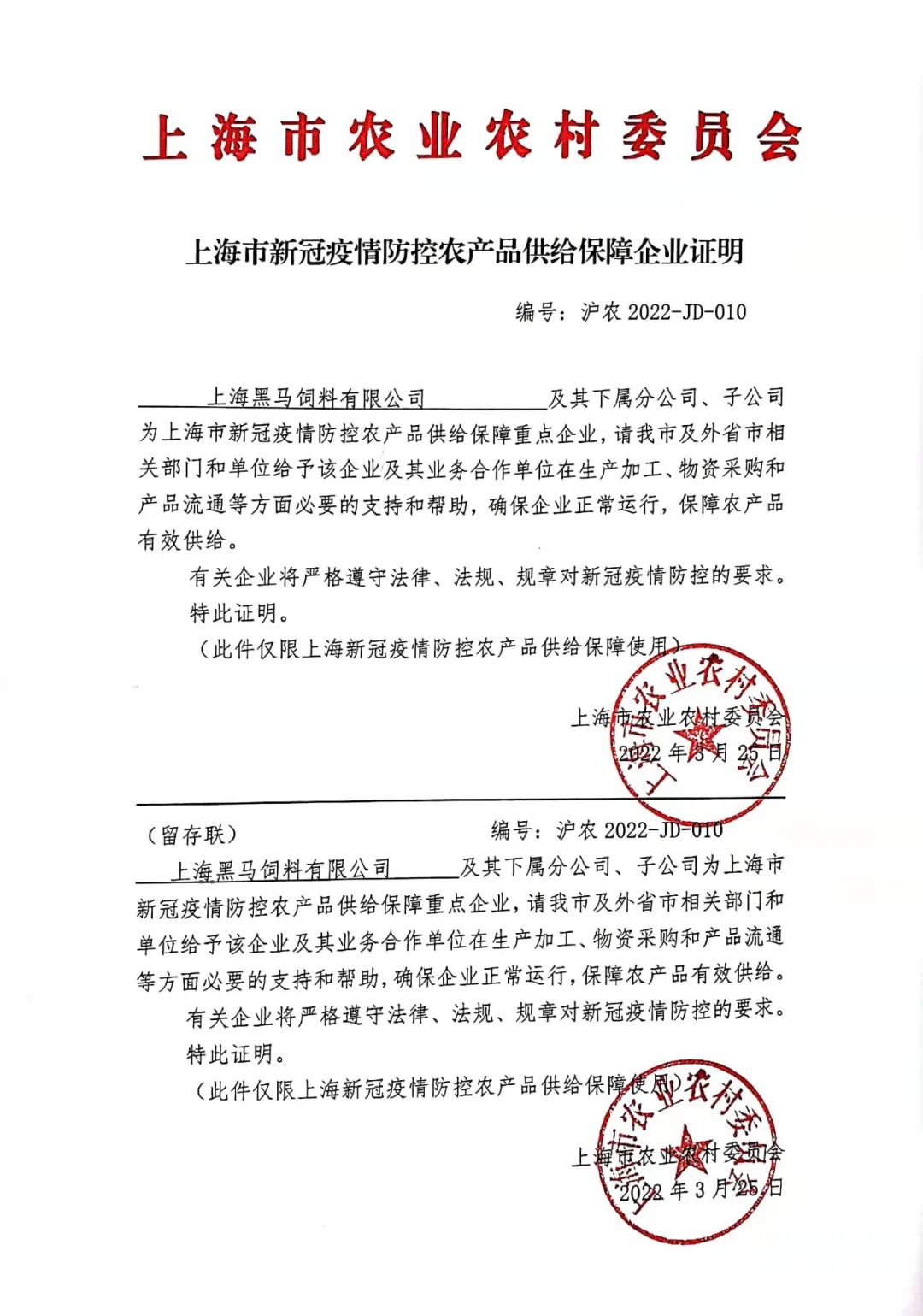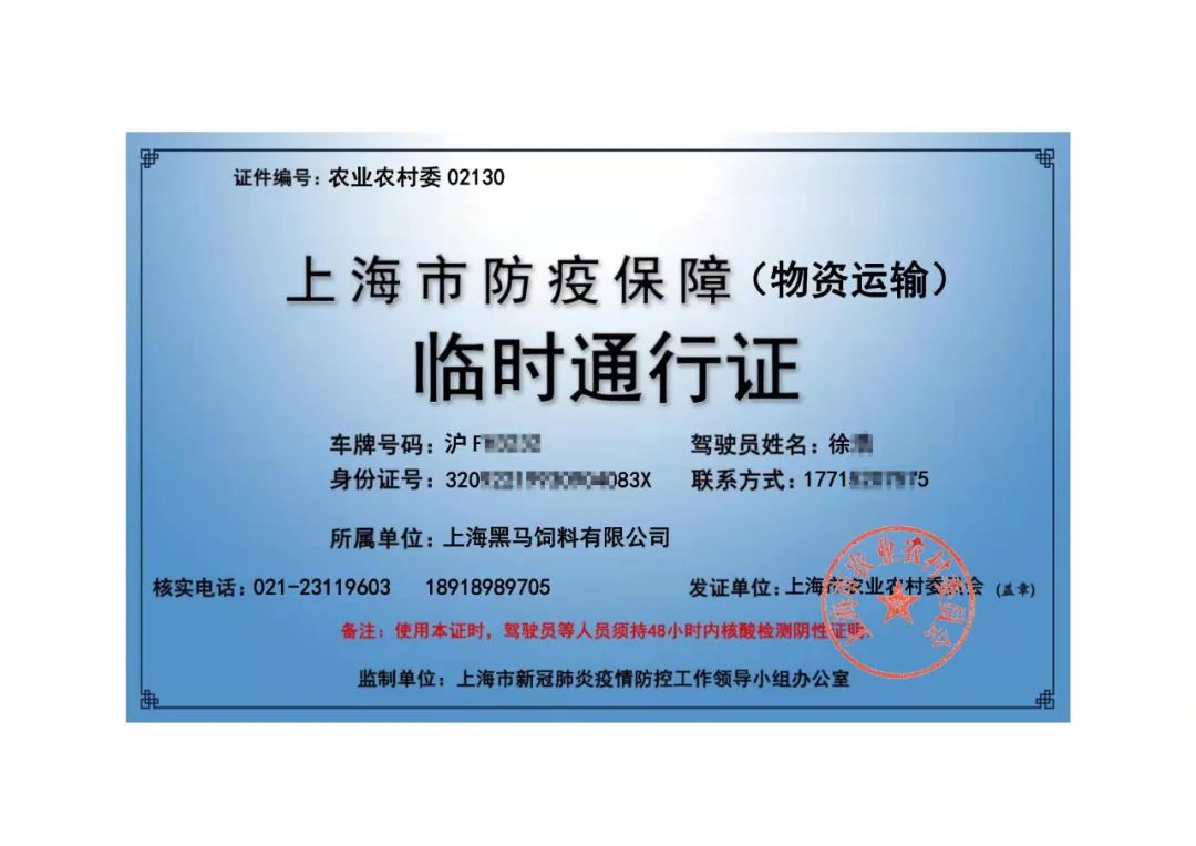 由于養(yǎng)殖業(yè)事關(guān)民生保障,而我司作為養(yǎng)殖業(yè)的上游企業(yè),承擔著保障飼料供應(yīng)的重要任務(wù)。基于此,市農(nóng)業(yè)農(nóng)村委將我司列為上海市新冠疫情防控農(nóng)產(chǎn)品供給保障重點企業(yè),并辦理好通行證及相關(guān)證明文件。