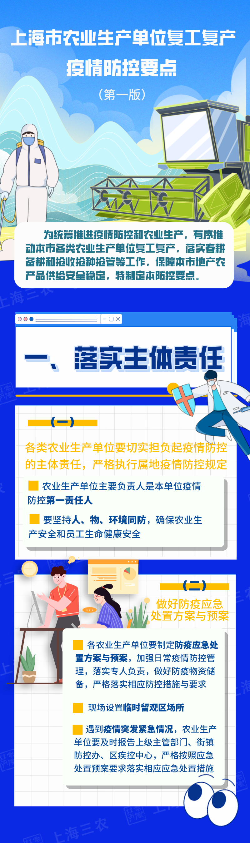 您當前所在位置:首頁 > 新聞中心 > 行業資訊 行業資訊 一圖讀懂 | 上海市農業生產單位復工復產疫情防控要點 在采取嚴格的閉環管理,做好人員消毒、環境和車輛消殺工作,并按時做好必要的核酸檢測和抗原檢測后,是可以保證產品供給安全和穩定的。 分享到:點擊次數: 更新時間:2022-04-26 17:30:18 【打印此頁】 【關閉】 上一條:五一國際勞動節 | 向最美勞動者致敬! 下一條:兩部委:畜禽養殖場所和飼料獸藥生產、屠宰加工企業采取閉環管理,獸藥、動物疫苗等物資經規范消殺后允許流通