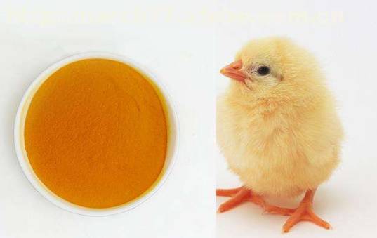摘要:一般飼料中葉黃素含量越高,肉雞皮下脂肪或蛋黃中的葉黃素沉積越多,皮膚、腳脛和蛋黃的著色越黃。品種、動(dòng)物健康狀況、飼料效率、不飽和脂肪酸及抗生素等均影響禽產(chǎn)品著色。