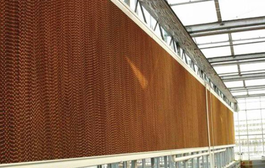 外界熱空氣進入水簾,通過冷水來冷卻空氣進入雞舍以達到降溫效果。